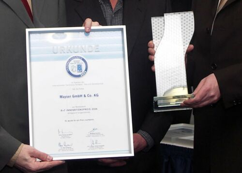 Mayser is awarded the innovation prize from the World’s leading trade fair for roller shutters, doors, gates, and sun protection systems (R+T) 2006 for its TRS signal transmission system based on a transponder. It was specially developed for applications in the roller shutter and sliding door sector.